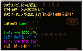 宠物资质是伙伴天生自带的一个属性,除了融合其他伙伴获得高资质之外,无其他办法去提升。资质值越高,伙伴的升级属性和境界属性越高!所以赶紧去收集高资质的伙伴吧!