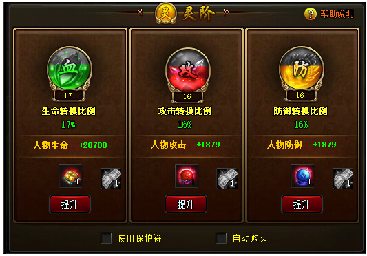 灵识达到10以后,提升失败将会回落一级,使用该等级的资质保护符(暂未产出)可以使失败不回落。第20层为保护层,即在该层提升失败不会继续回落。