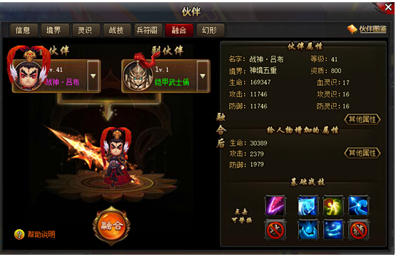 融合步骤:点击“融合”界面,分别选择主副伙伴后,就可以对伙伴进行融合了,融合后副伙伴将消失。