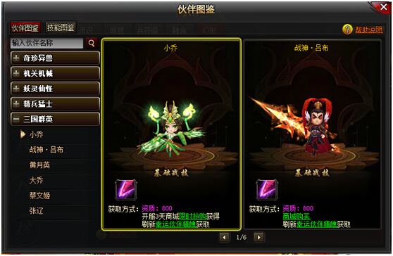 伙伴图鉴:可以查看所有伙伴的形象、技能、获取方式。高资质的伙伴还会特别标记处资质值范围。输入伙伴名称可以进行模糊查询。