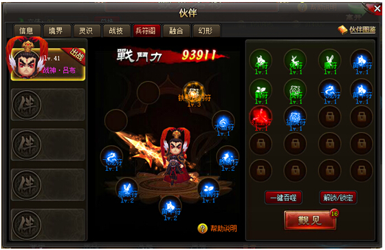 1、伙伴能穿戴兵符的数量由开启的格子决定,格子的开启和宠物境界关联。宠物境界越高,开启的格子越多。