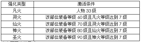 1、进行装备神化需要玩家等级50级以上,装备强化达到凡火5级。
