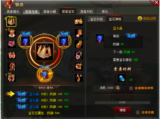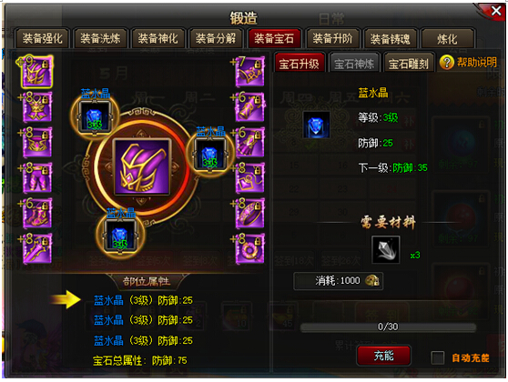宝石在手,天下我有!激活装备宝石并充能提升宝石等级,能获得大量的属性,从而提高人物战斗力。