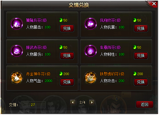 交情:觐见周瑜和吕布可以获得交情,积攒一定量的交情可以兑换高品质的兵符。