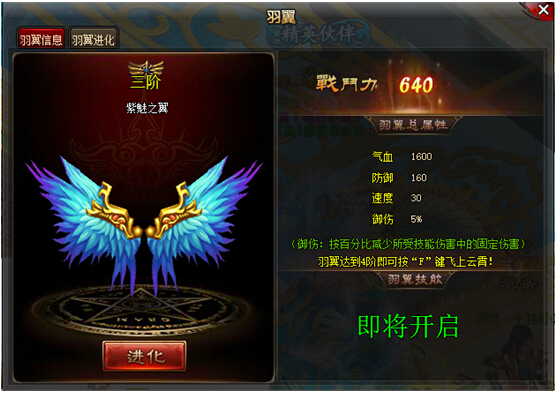 2、翅膀有个特殊的属性:御伤,即按照百分比减少所受技能伤害中的固定伤害。