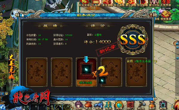 随着等级的增长,能闯的层数也将增多,到极限时,不是你被魂兽打死,就是超过破关时间,自动判定闯关失败,只能离开副本。离开副本后,系统会对你的挑战进行全方面的评分,并有机会抽取珍稀宝物。