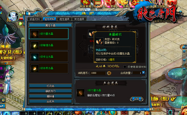 宝石材料中,与宝石镶嵌有关的东西都能合成,像水晶、打孔钻、镶嵌刻刀、摘除锤等等,对于宝石镶嵌及卸下都是极为重要的,不同的等级所需要的物品也可以通过炼炉来进行调整。