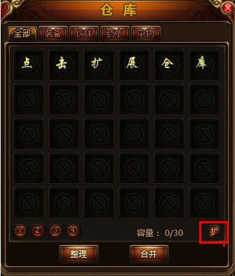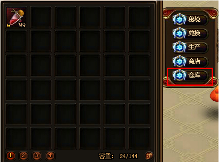 仓库的作用 1、仓库可以用于存放暂时不用的物品,玩家只需要打开背包点击仓库按钮就能使用仓库。 2、任意玩家,都可以在世界场景中直接使用仓库。 3、仓库格子除了赠送的,其他的需要玩家自己使用元宝打开。 4、打开背包点击按钮: