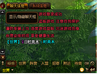 世界频道:等级需达到10级,此频道发出的信息可让所有玩家看到,发言间隔为10秒。
