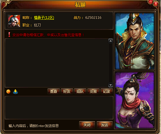 队伍频道:有队伍的玩家才有的频道,同一队伍的全部玩家都能收发信息。