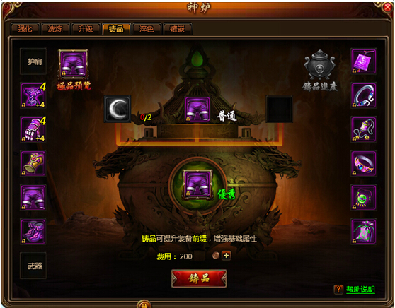 系统为广大玩家提供了装备的升级,由普通变为完美的方法。所有蓝色以上非完美品质的装备均可进行升级,每次提升需要消耗一定数量的月之精华。