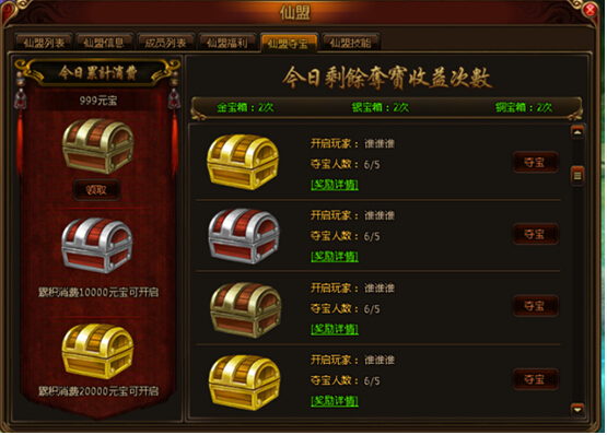 只要仙盟内任意成员在游戏内消费额度达到一定程度,全仙盟成员都可获得丰厚奖励哦!