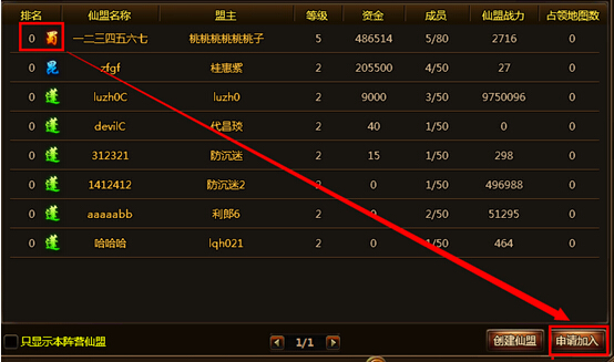 在仙盟面板中寻找自己同阵营心仪的仙盟,选中之后,单击右下角的申请加入,即可向目标仙盟发送加入申请,需要等待该仙盟【盟主/副盟主】验证之后才可以加入哦,为了更快找到组织,亲,赶紧练级和提升战力成为高手吧!