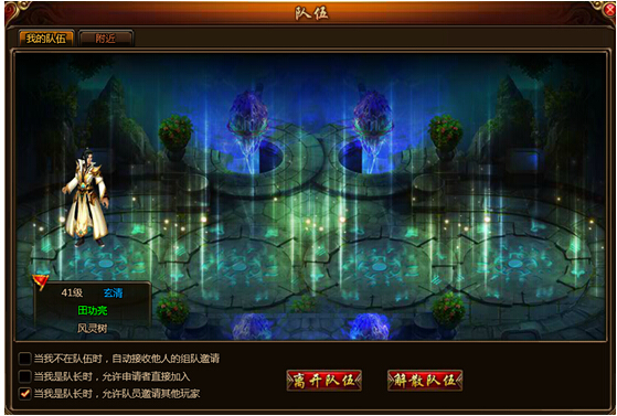 方法二:点击游戏菜单界面的【组队】或使用快捷键T打开组队界面,在【附近】处就可以看到周围的其他玩家,点击【邀请】按钮,对方同意后,组队完成。