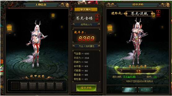 开始进阶”即是玩家手动进阶,只要进阶材料足够,就可以鼠标快速点击进阶按钮进行进阶,若苍龙战甲进阶材料不足,则可以使用元宝代替。