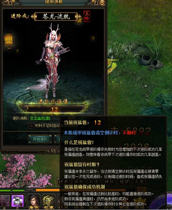 注:苍龙战甲祝福值在一定时间后会清零,请一次性完成苍龙战甲升阶,以免错过苍龙战甲进阶时间,造成祝福值损失