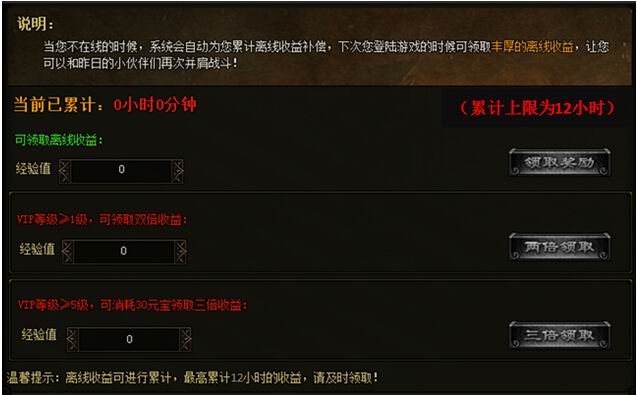 VIP1级以上玩家可领取双倍收益,VIP5级以上玩家可领取三倍收益