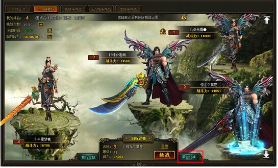 进行挑战不管输赢都可以获得经验以及荣誉点。