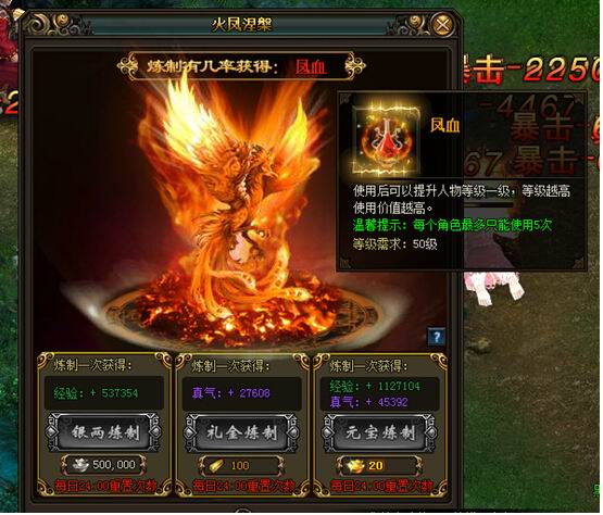 3,炼制凤血可获得大量经验,真气