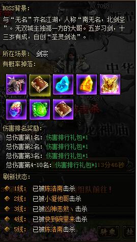 3、击杀野外BOSS伤害排行榜上的玩家都可获得奖励。