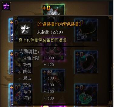 当全身装备满足一定条件时,即可激活套装属性,获得额外的属性加成。