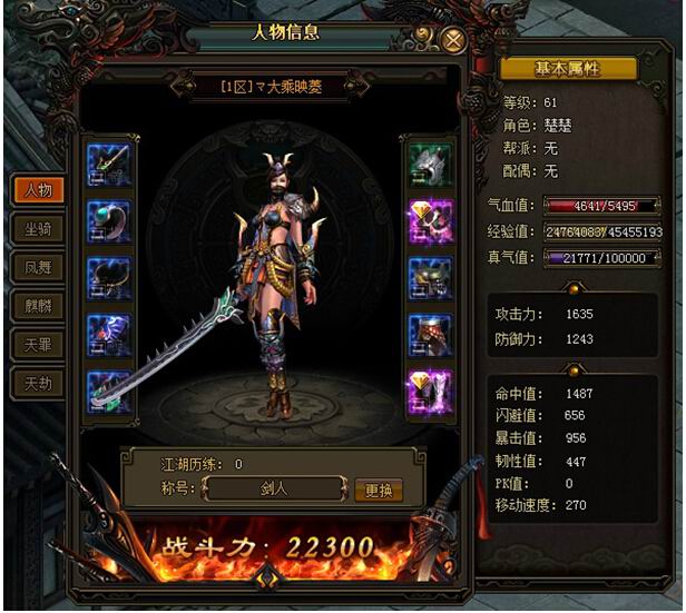 在人物信息面板中,玩家可以直观的看到自己身上所穿戴的装备。以及当前装备所带来的外形效果。