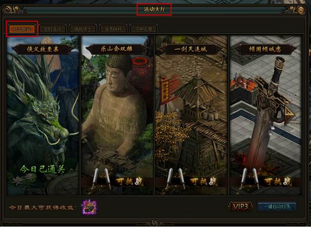 自动扫荡的耗时就是玩家通关此副本的最快耗时。玩家可以挑战副本,来刷新自己的最快耗时记录,这样扫荡起来更节约时间。达到VIP3的玩家可以选择一键扫荡所有已通关过的副本。