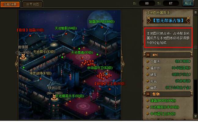 同时占有领地的帮派成员在领地地图内练级可以获得额外经验加成。