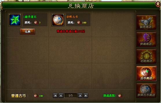 普通古币用于在【古币商店】兑换升星石和宗师古币等重要道具,宗师古币则用于在【宗师古币商店】兑换高级升星石。古币可通过挑战相应难度的【终南古墓】获得。