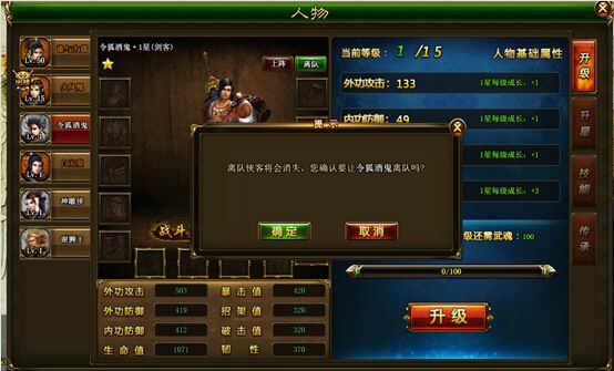 2)已离队侠客不能归队,只能重新招募或通过道具卡获得。