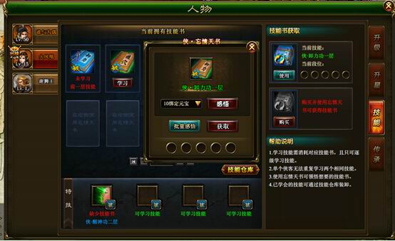 2.【侠·忘情天书】感悟技能需要消耗元宝或者绑定元宝