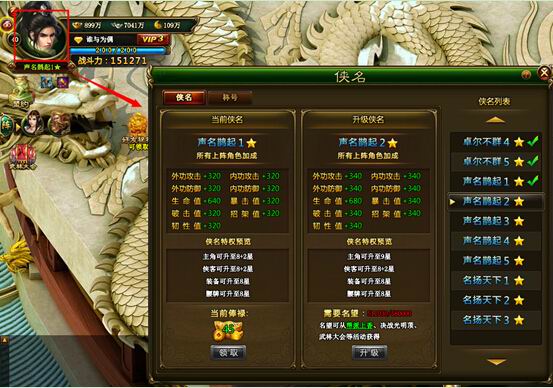 2.侠名可提供大侠属性加成,侠名等级越高,属性加成越高
