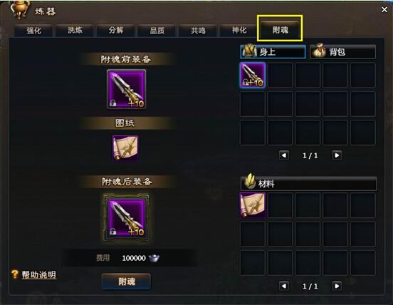 5.附魂消耗对应的附魂图纸和银两,成功率100%。