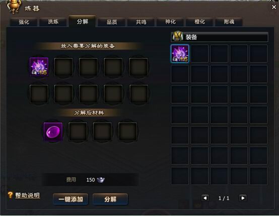 1.可进行分解的物品包括:绿色装备、蓝色装备、紫色装备、图纸。 一件装备可以分解成一个对应颜色的洗炼石;一张图纸可以分解为一个紫色洗炼石。