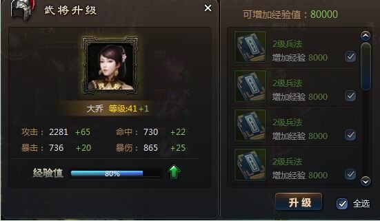 使用兵法可以提升武将等级,等级越高,武将属性越强。守卫南蛮入侵可以获得兵法,探宝也可获得高级兵法。