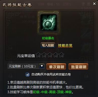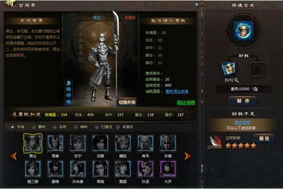 武将将魂需要消耗将魂石,可通过神秘商店、探宝、过关斩将获得。