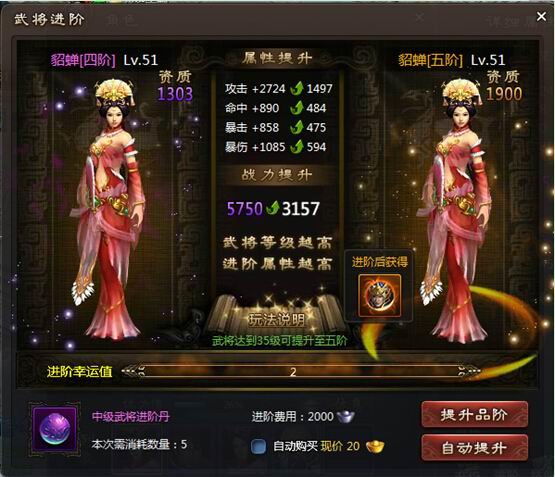 进阶武将,可以提升武将资质,提高武将属性,武将可以学习更多技能。