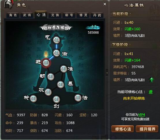 治国之本在于修炼心法,明心见性,修炼心法可大大提升角色属性。