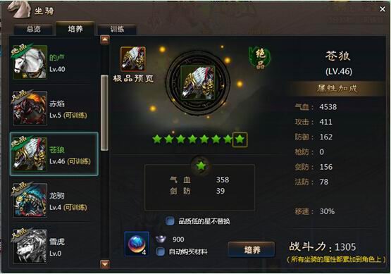 培养可以提升坐骑品质,培养消耗坐骑资质丹和银两,坐骑资质丹可在商城购买。
