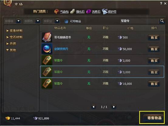 点击界面右下角寄售按钮,即可开启寄售界面。