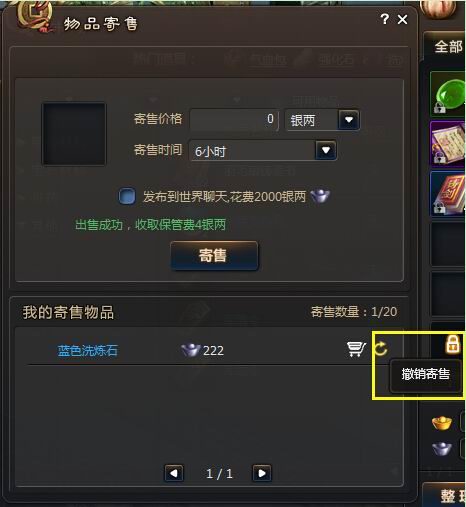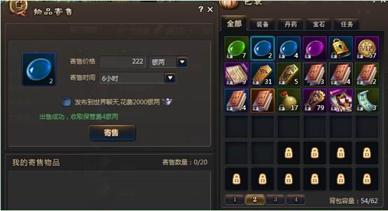 可以花费一定的银两,将物品出售信息发布到世界频道,吸引买家。