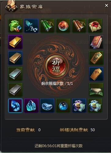 D.在家族宗庙祈福可获得珍贵物品,祈福消耗贡献;
