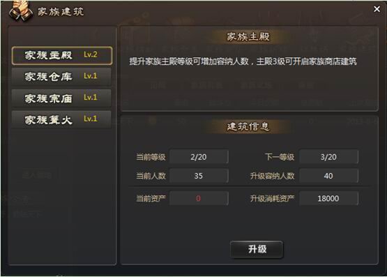 F.升级家族建筑可以增加家族容纳人数,升级消耗资产;