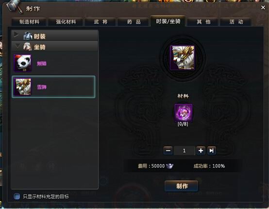特殊时装以及特殊坐骑可以在【时装/坐骑】中制作。