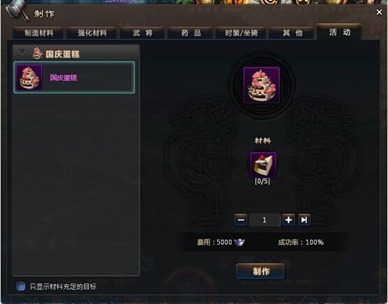 装备制造材料、装备强化材料和游戏中大量道具,可在制作功能中完成。