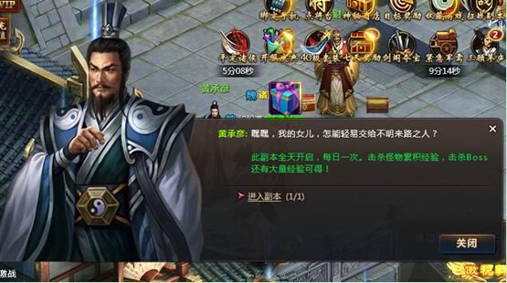 等级达到38级玩家,可在从洛阳NPC【黄承彦】处进入经验副本。单人玩法,不可组队进入。