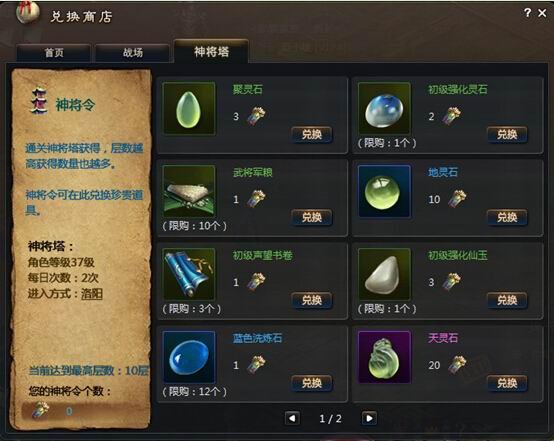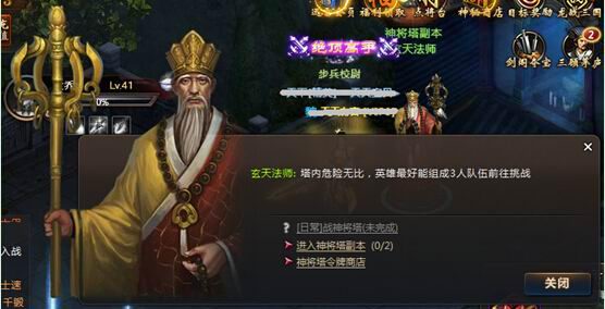 1.角色达到37级,可在洛阳NPC【玄天法师】处进入神将塔,每天可挑战2次