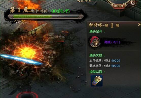 通关有时间限制,在规定时间内没有通关,即被传送出神将塔,但仍可获得经验和部分物品奖励。