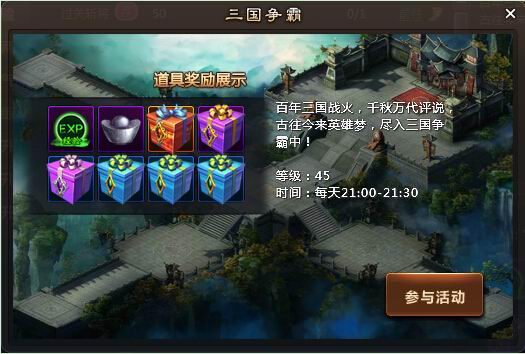 角色达到45级可参与,每天晚上21:00-21:30开启。