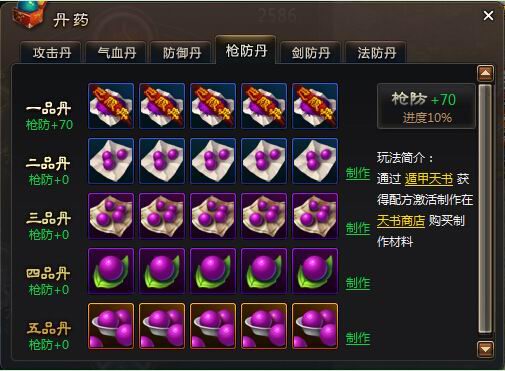 B.【遁甲天书】副本掉落丹药配方,激活后可在天书商店购买材料合成丹药,服用丹药可提升对应属性。